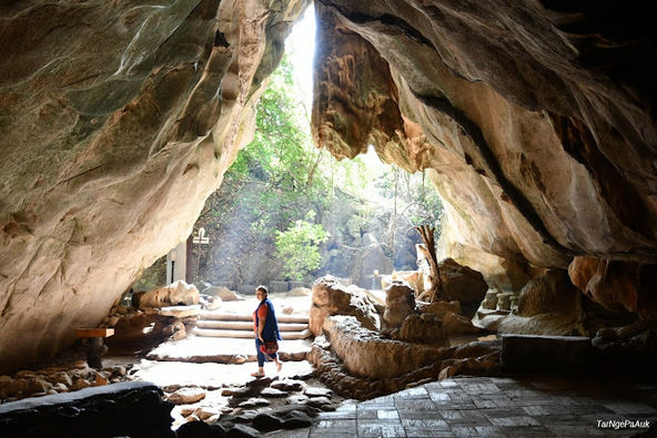 This remarkable sanctuary cave is a short 40 minute drive from Suanglangna.  The entrance is a marked left turn off highway 101; and the parking is 1 KM from the turn off.  From the parking area there is a scenic 250 m climb to the entrance to the karst cave.